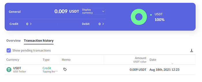 After selecting the type of wallet, platform, and then authorizing the social accounts, tips will reflect in their wallet right away. Tips can be checked on Wallet’s history page.